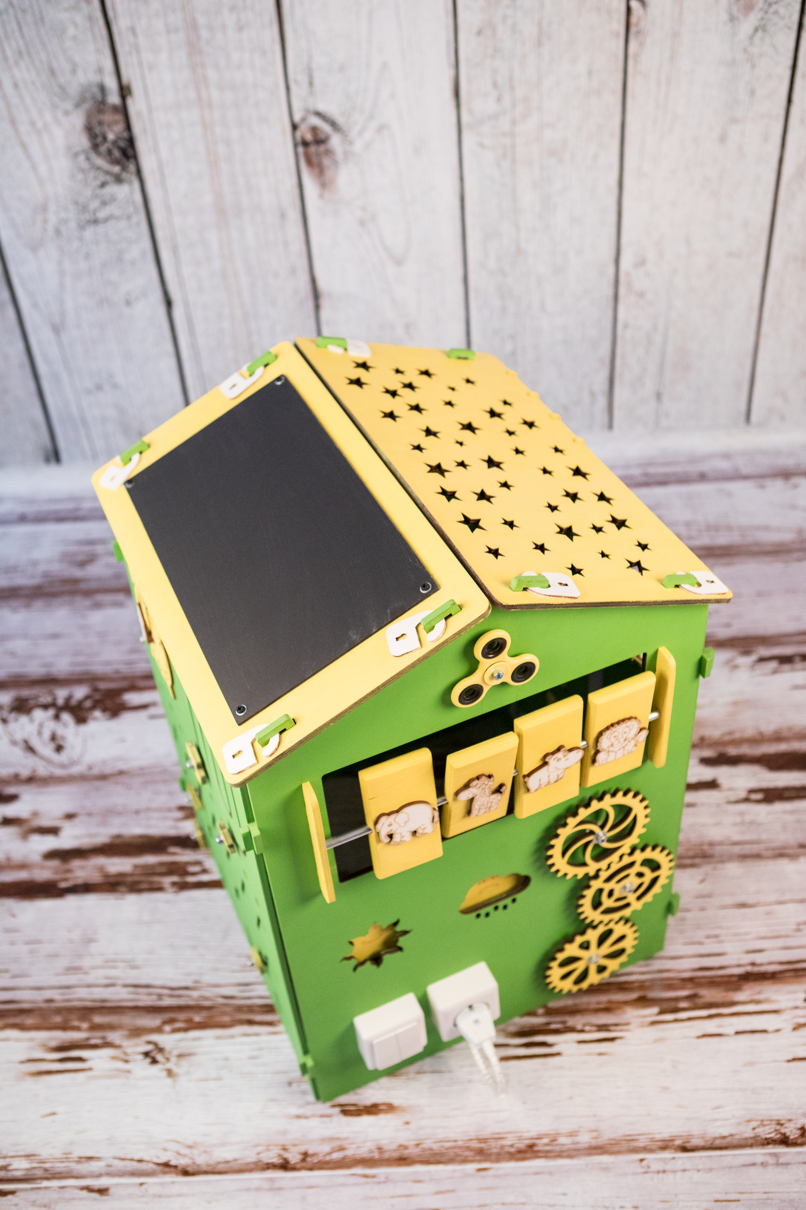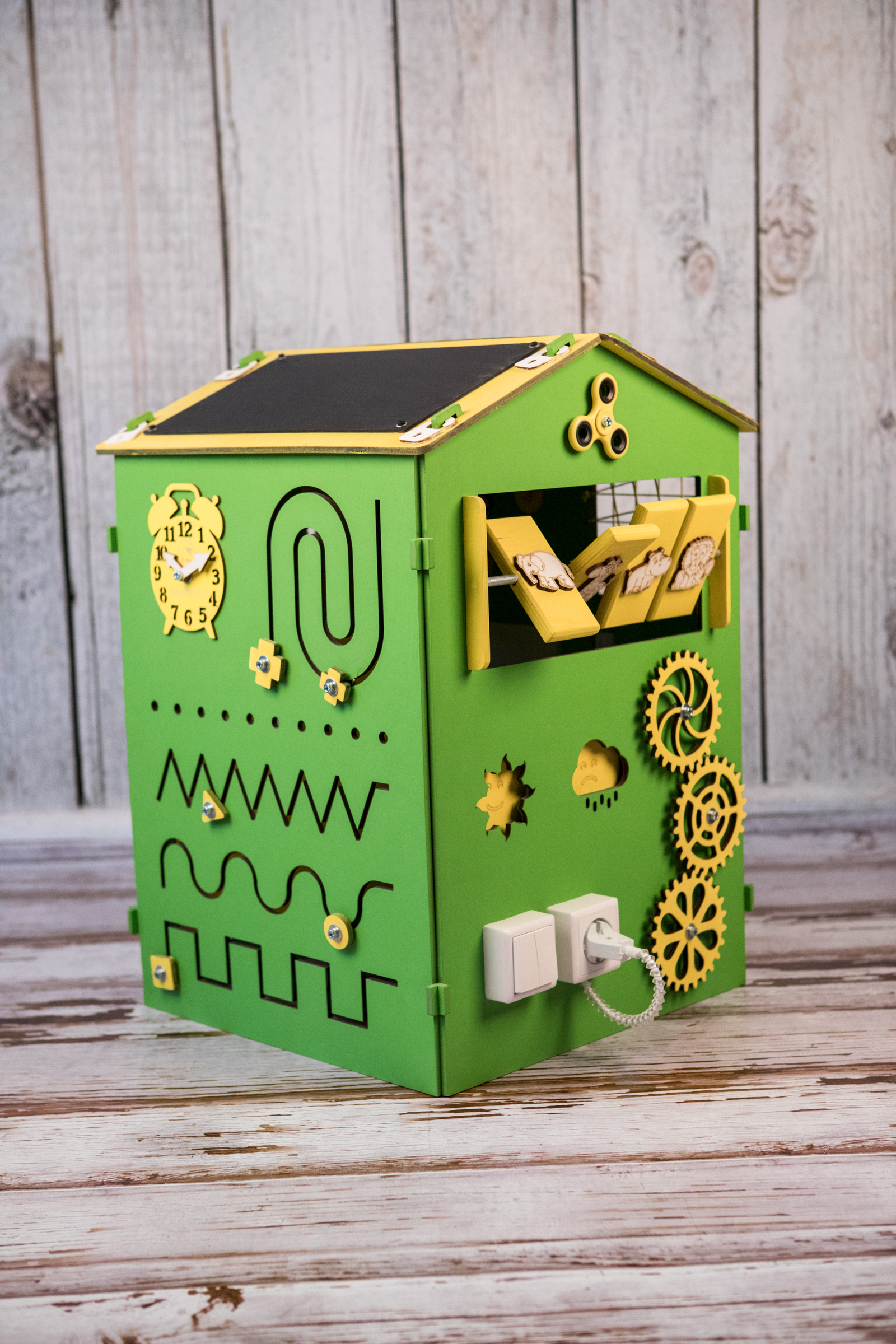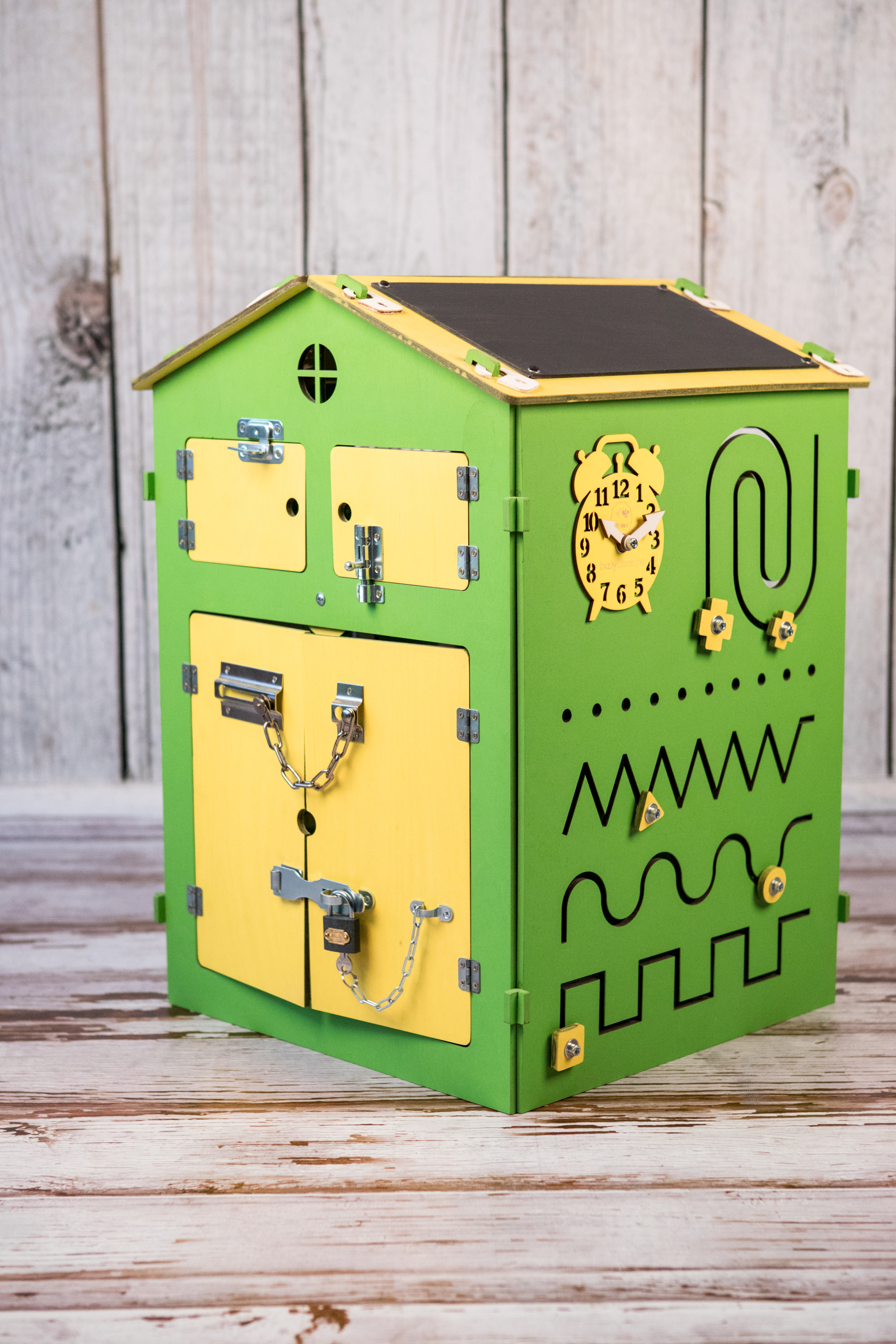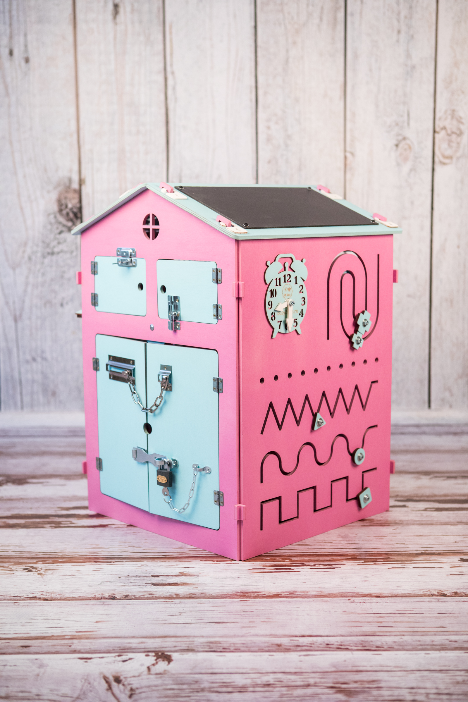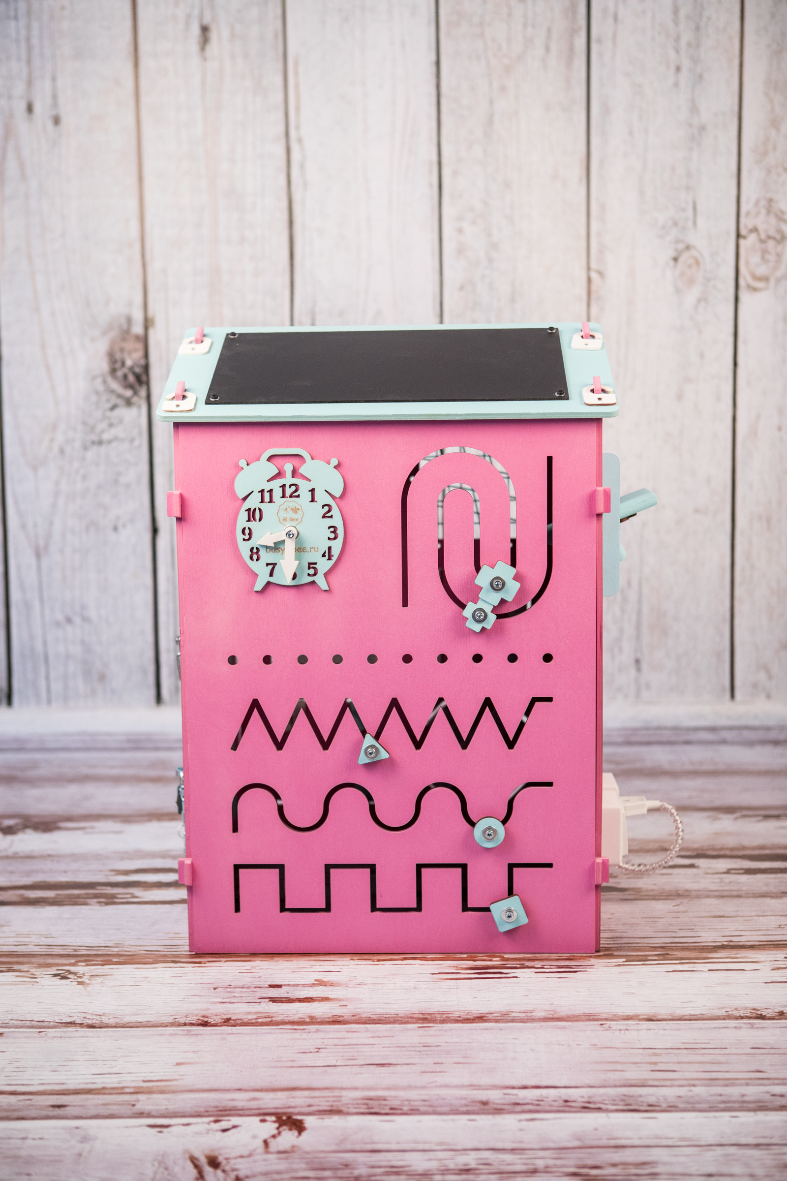 Любой бизиборд можно дополнить меловой доской Теперь бизиборд будет стоять Окрашен в основной цвет бизиборда