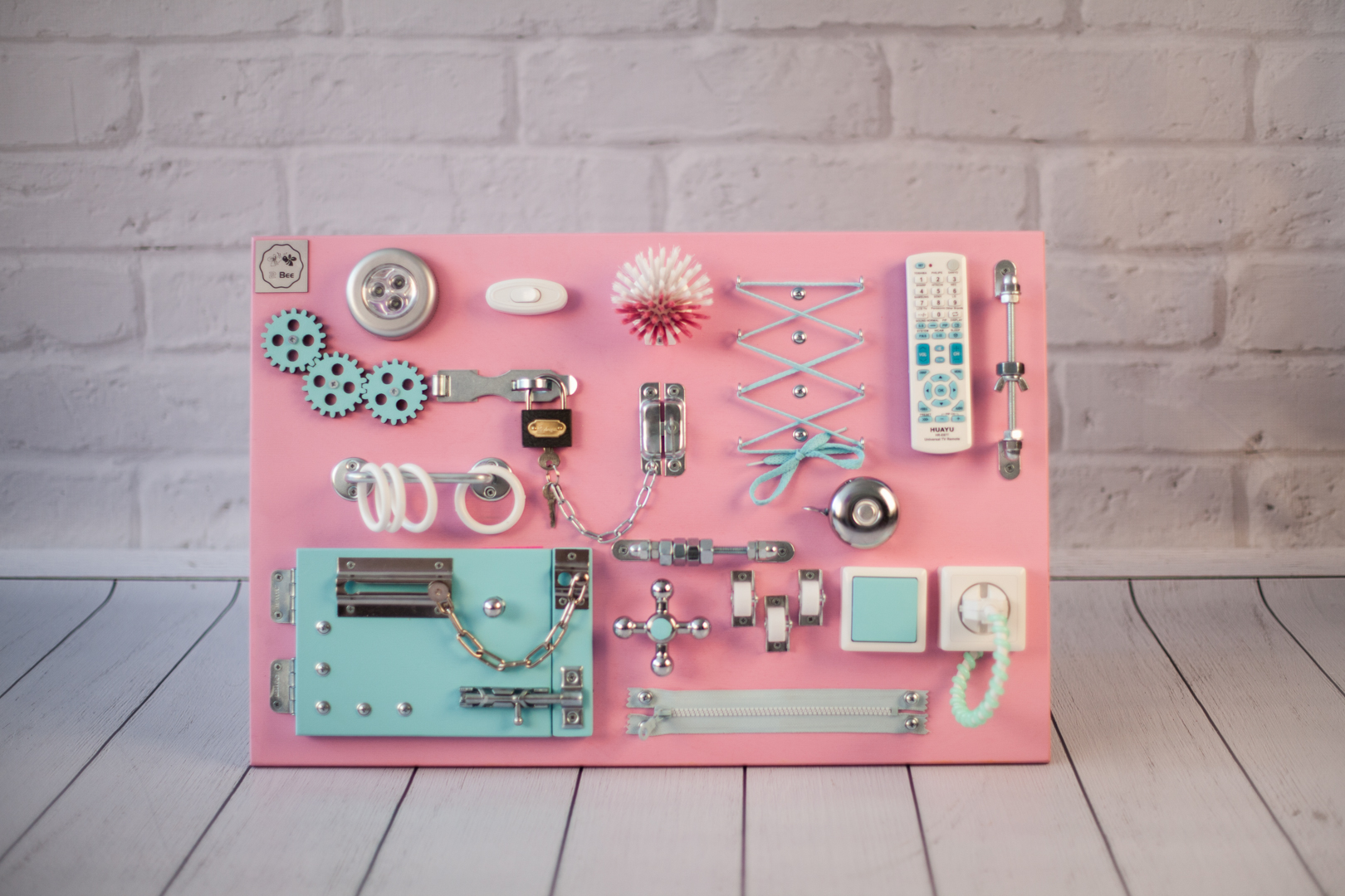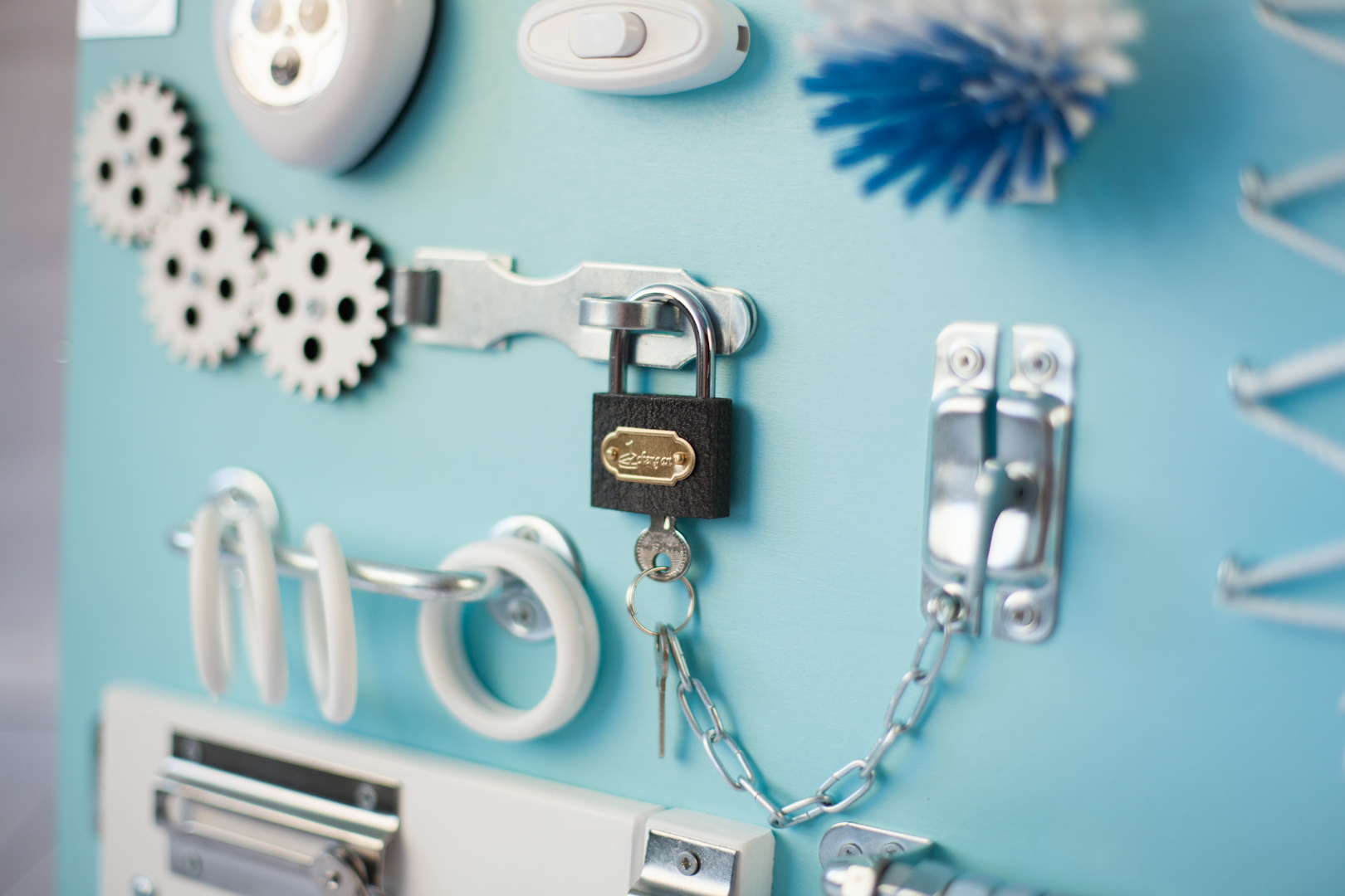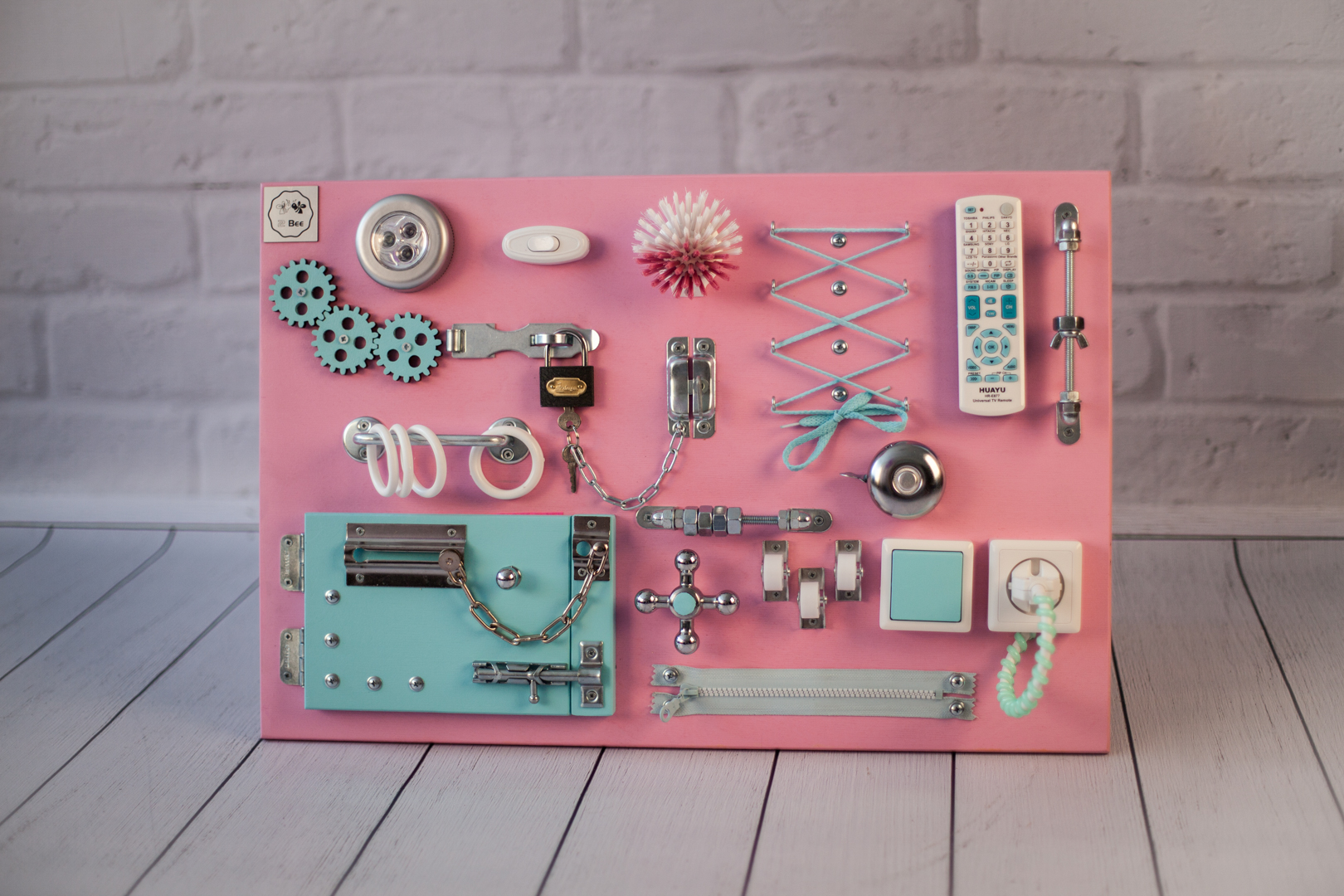 Самостоятельно изготовленный или приобретенный в магазине бизиборд для детей, кроме того, положительно влияет на мыслительные способности и воображение.
