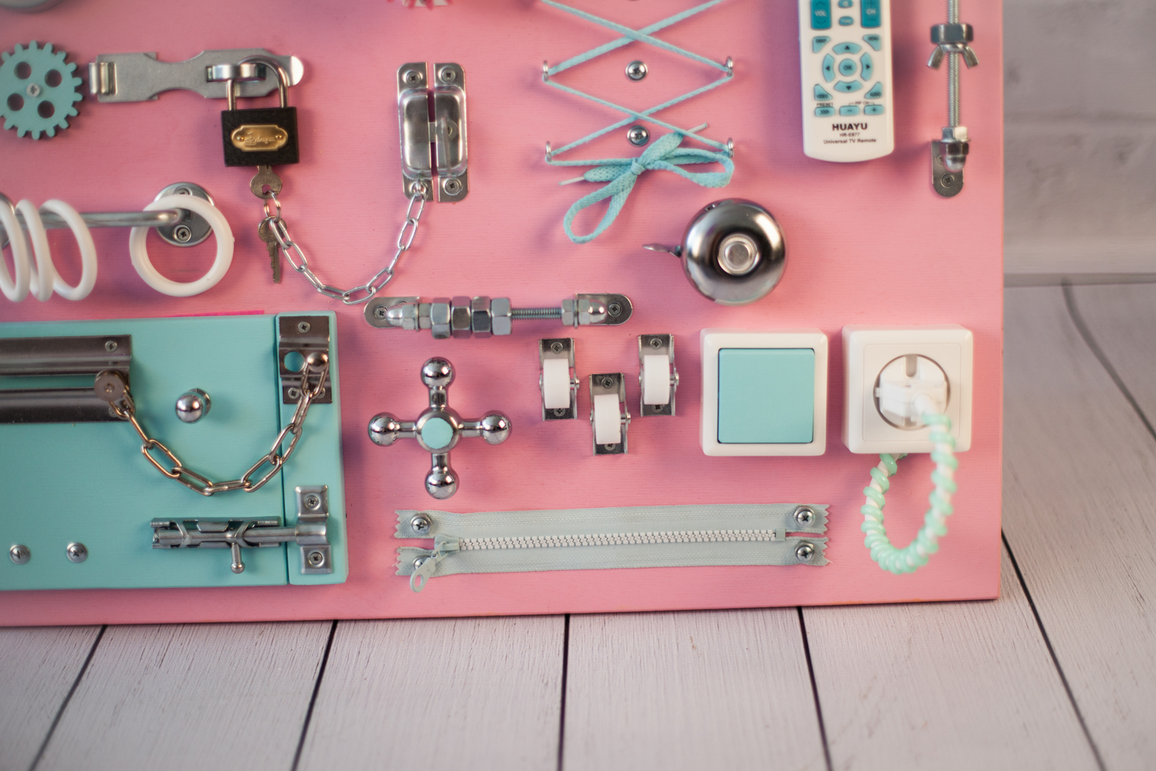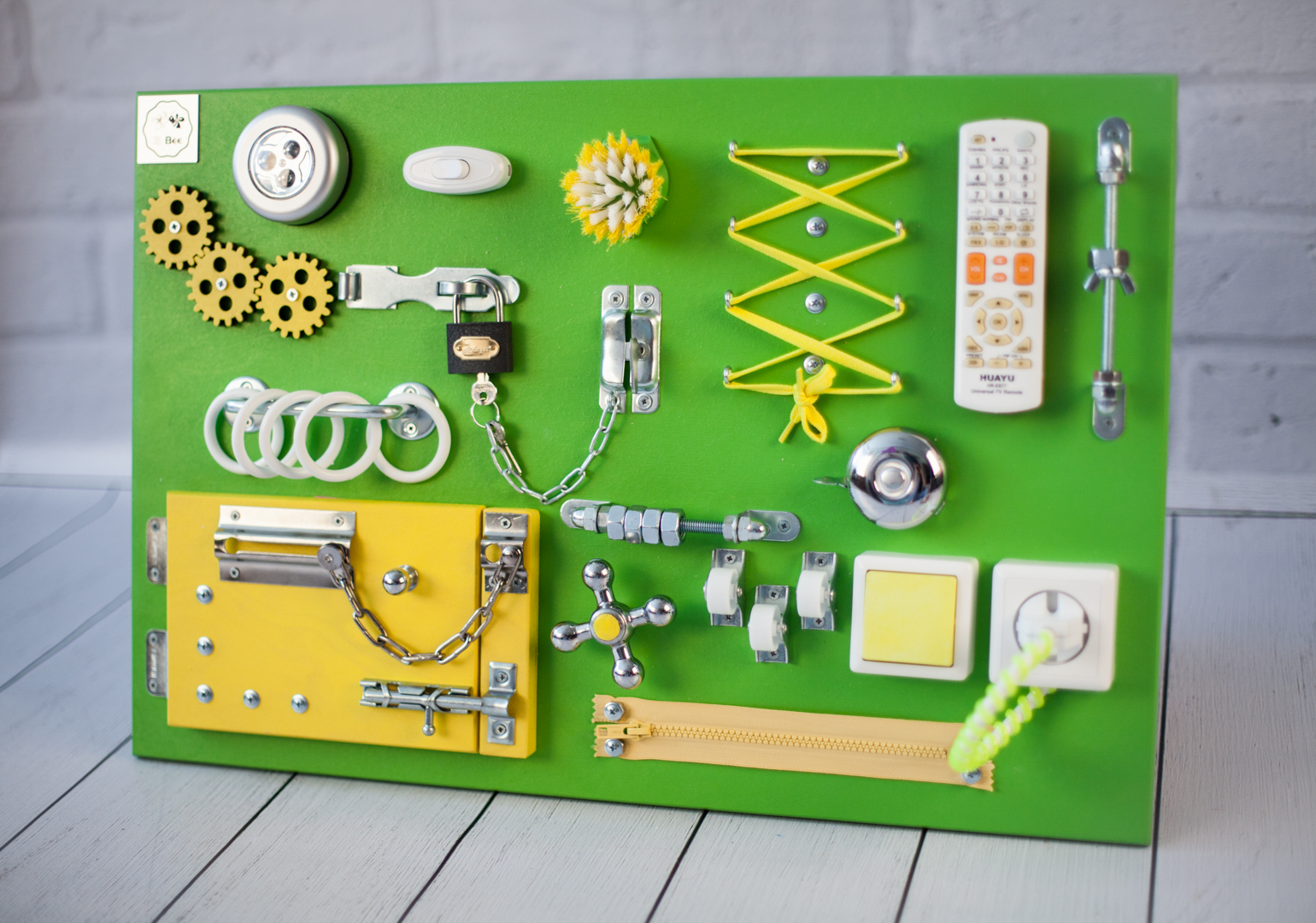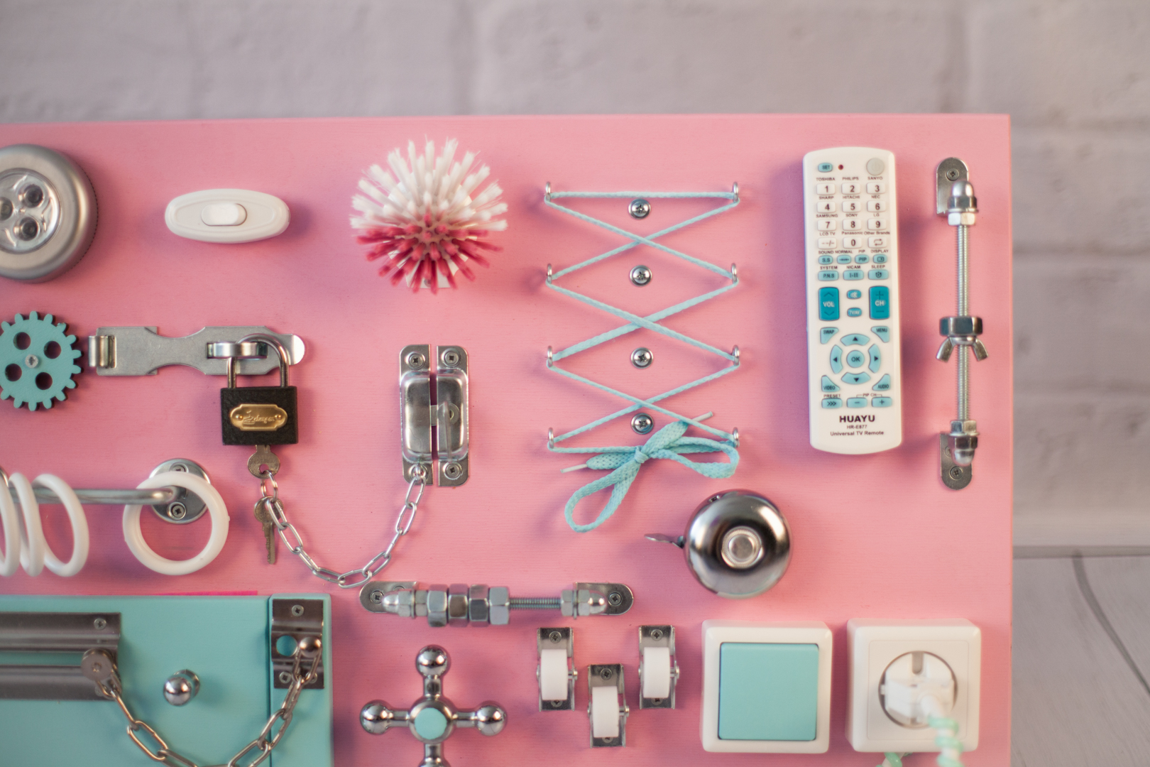 Самостоятельно изготовленный или приобретенный в магазине бизиборд для детей, кроме того, положительно влияет на мыслительные способности и воображение.